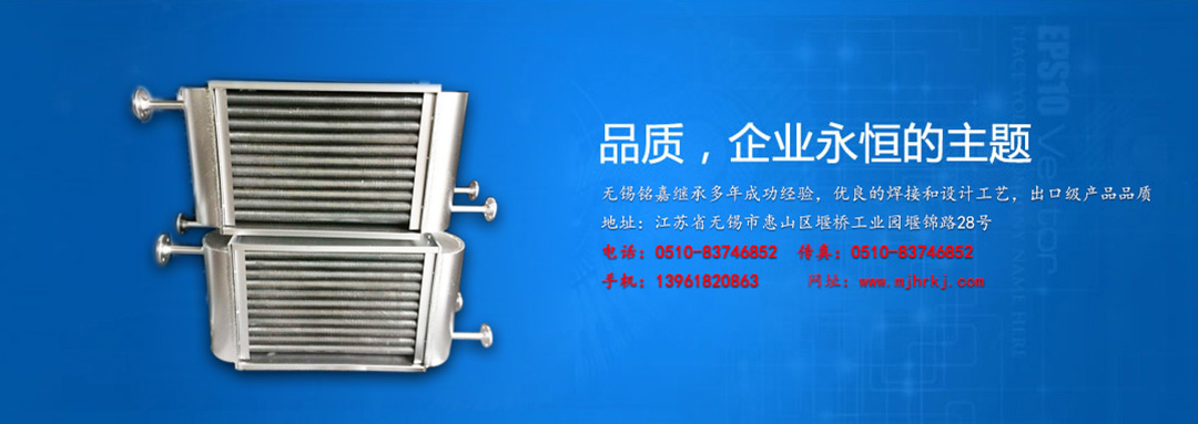 無錫銘嘉換熱科技有限公司是生產散熱器的專業工廠。 產品有:高溫水或蒸汽散熱器、高溫導熱油散熱器、表面空氣冷卻器、油冷卻器、鋁制串片式暖氣片、空氣冷卻器、翅片管換熱器
